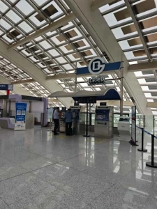 After arriving at T3, cross the corridor from the arrivals area to the parking building. You’ll find the subway entrance on the second floor of the parking area.