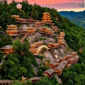 Located at the foot of Lingshan Mountain in Shangrao, Jiangxi Province, Vagoo is a high-altitude cultural and tourism resort themed around a “Fairyland Valley.” Built along the mountain and often shrouded in mist, it beautifully blends natural landscapes, cliffside architecture, and an artistic village. During the day, visitors can admire spectacular peaks and seas of clouds; at night, enjoy starlit skies and glittering lights. The valley also features lively markets, cliff cafés, and an internet-famous glass walkway. Known as the “Peach Blossom Land above the Clouds,” it’s perfect for couples, photographers, and families seeking a dreamy mountain getaway.