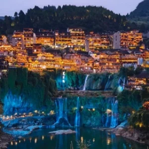 A charming riverside town with well-preserved Ming and Qing architecture. Known for wooden houses, stone bridges, rich culture, and vibrant nightlife along the Tuojiang River.