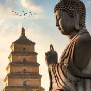 The Giant Wild Goose Pagoda, built in 652, is a Buddhist landmark in Xi’an. It was used to store scriptures brought from India and symbolizes the spread of Buddhism in China.