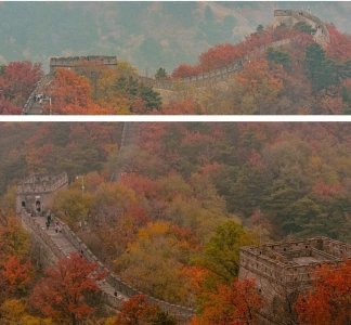 Autumn is when Jinshanling truly shines, with vibrant red and orange foliage covering the hills. This section is quieter and offers great photo opportunities for fall foliage enthusiasts.