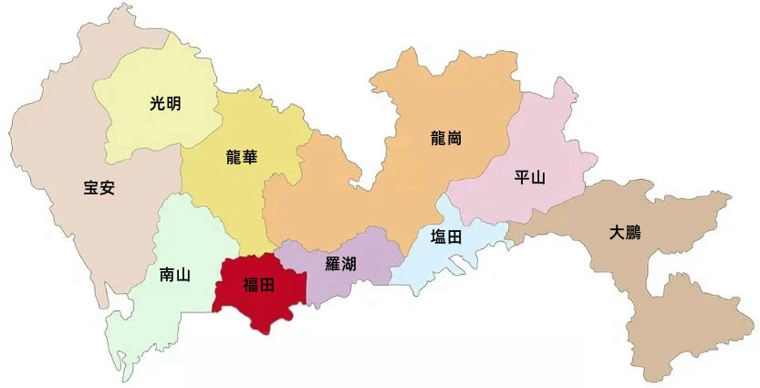 深センは複数の行政区に分かれており、その中には羅湖区、福田区、南山区、宝安区、龍崗区、鹽田区、坪山区、光明区、大鵬新区、龍華区が含まれます。各区は独自の特徴を持ち、都市全体のインフラと経済発展に重要な役割を果たしています。