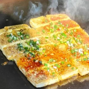 Баоцзян Тофу — это знаменитая уличная закуска Юньнани: тофу обжаривается до золотистой корочки снаружи и нежной текстуры внутри, затем подается с острым соусом, чесноком и зеленью, создавая дымный, пикантный и насыщенный вкус.