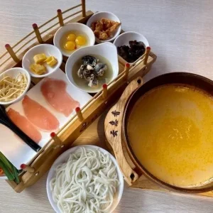 «Переходящий мост» рисовая лапша — самое культовое блюдо Юньнани: горячий бульон, нежное мясо, овощи и рисовая лапша собираются прямо за столом, создавая ароматный, увлекательный и душевный кулинарный опыт.