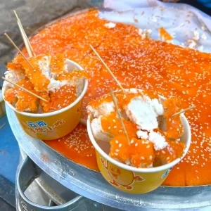 Паровой рисовый пирог — это традиционная юньнаньская закуска из ферментированного риса, приготовленная на пару до мягкой и воздушной текстуры, с лёгкой сладостью. Часто употребляется на завтрак или в праздничные дни.