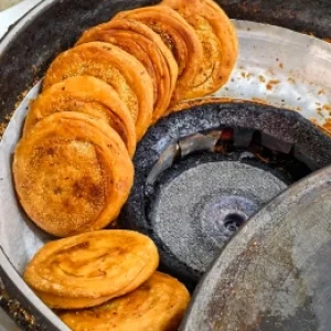 แผ่นแป้งอบสอดไส้กรอบที่มีต้นกำเนิดจากย่านชานเมืองเฉิงตู มีขนาดใหญ่ เนื้อสัมผัสกรอบ และไส้รสเค็มหอม มีกลิ่นหอมเข้มข้น พกพาสะดวก และอิ่มอร่อย เป็นอาหารริมทางยอดนิยม