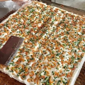 ของว่างพื้นบ้านทำจากแป้งข้าวเหนียวไส้กุ้งแห้ง เคี้ยวหนึบ มีกลิ่นหอม แสดงถึงอิทธิพลอาหารทะเลในครัวจีนชายฝั่งจูไห่ เป็นที่ชื่นชอบทั้งคนท้องถิ่นและนักท่องเที่ยว