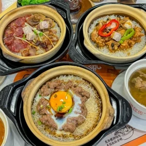 煲仔飯是廣東特色美食,米飯於砂鍋中慢火烹煮,上鋪臘腸、排骨或雞肉,飯香伴隨鍋巴焦脆,風味獨特。