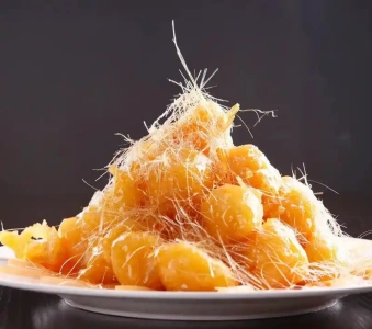 - 介紹:拔絲山藥是泰安的傳統名點,主要食材是山藥。製作過程中,將山藥煮熟後,外面包裹糖漿並迅速拔出長絲。拔絲山藥的外表呈柿黃色,口感脆甜香酥。山藥經過煮熟後,外焦裡嫩,吃起來脆脆的,但內部卻軟軟的。糖漿的包裹使得味道甜美而不膩。